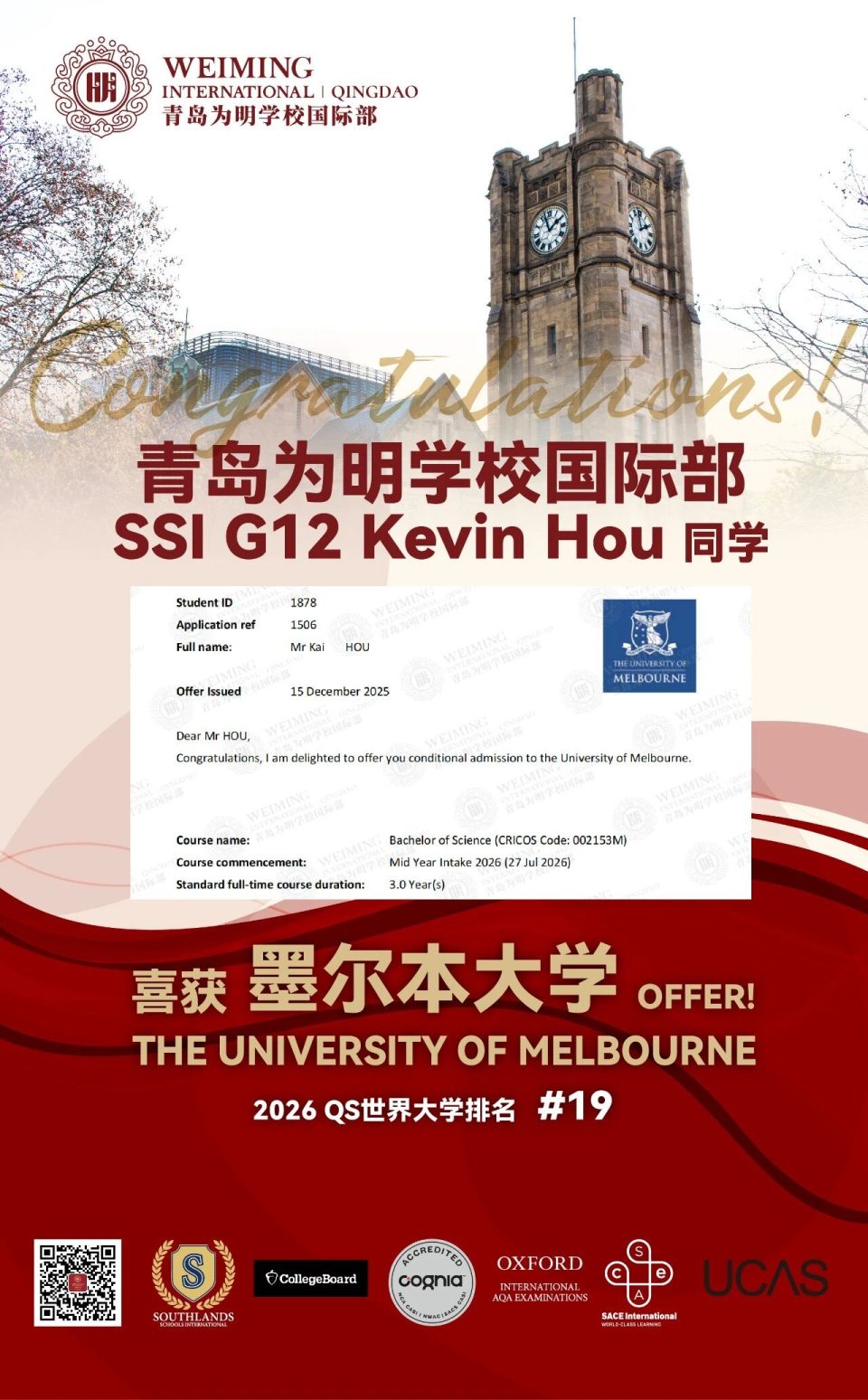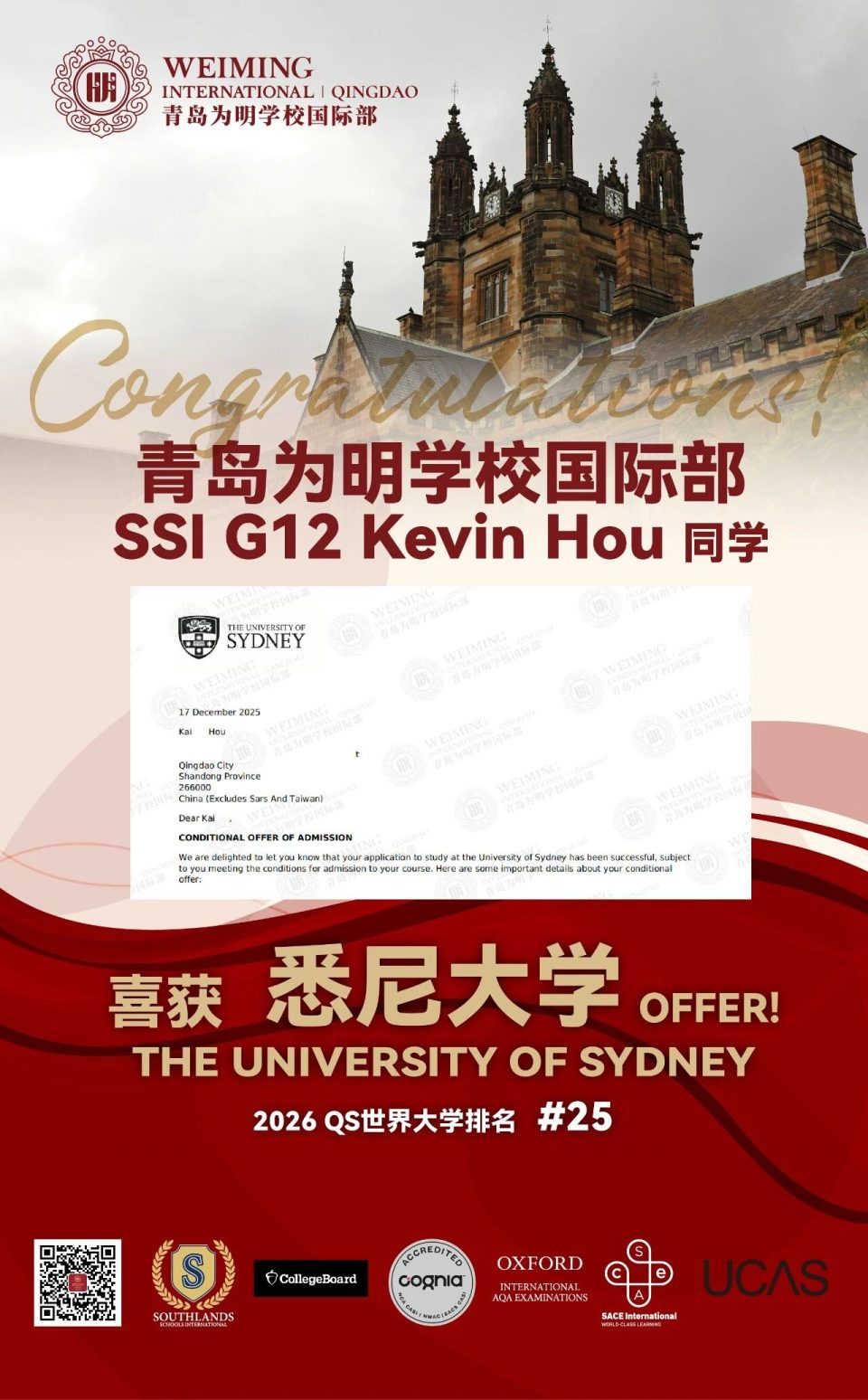 青岛为明学校国际部始终致力于为学生提供高品质的国际教育,助力学子走向世界舞台。建校11年来,我们已成功培养8届美高毕业生与5届英澳毕业生,历届学子均被海外知名大学录取,圆梦心仪院校。