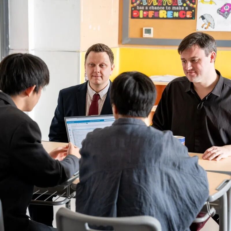 家长会现场,学校精心打造了"三位一体"的交流平台。班级家长会上,中外方班主任配合向家长汇报了班级整体情况和特色活动;学科教师一对一沟通区,每位家长都能与任课老师进行单独的深入交流,并有学生志愿者担任家长与外教沟通的“翻译官”;升学指导咨询处,专业老师为不同年级的家长提供了个性化的升学规划建议。