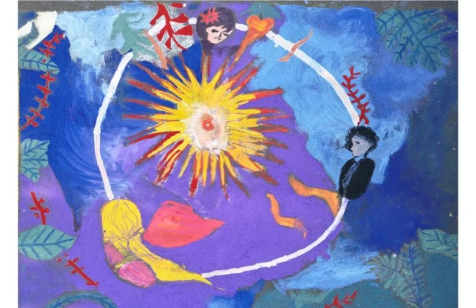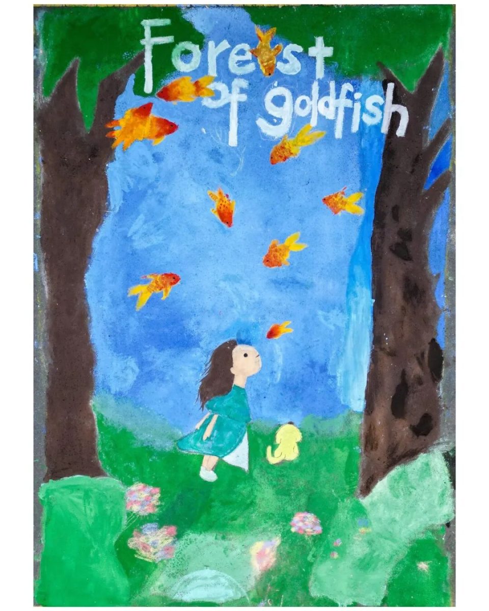 9年级的同学们运用自然元素,构造出了一幅治愈美景。树林里游动的彩虹是孩子们独特的想象,也是他们想要打破边界,突破常规的追求。平静而又有些矛盾的画面是同学们传递温暖的表达,也是对世界诗意化的观察。