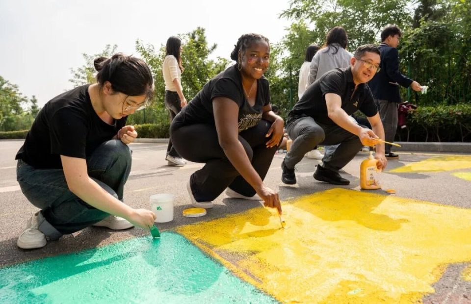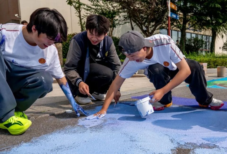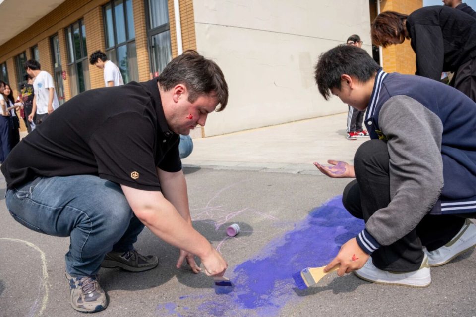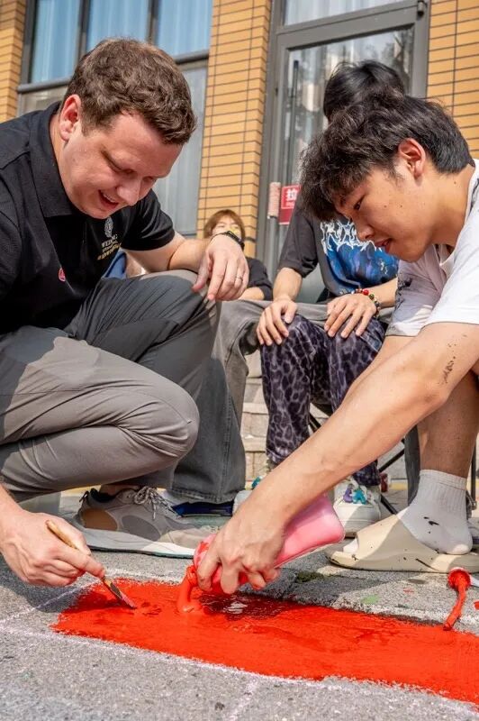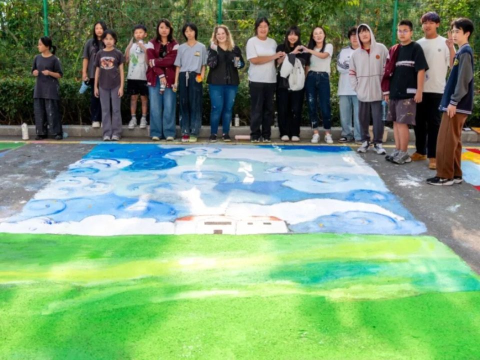 本次活动由美术老师主导,学生会协同,将师生们分为8个小组,中外教携手协作,共同带领学生完成创作。在活动中,中外教的指导与学生的创意相得益彰,师生们彼此激发灵感,共同绘就出一幅幅饱含热情与深意的作品。