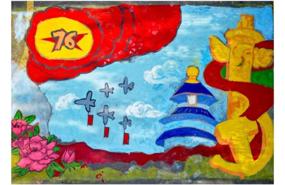 结合国庆76周年的主题,选取北京天坛作为代表景物,G10的同学们用鲜艳的色彩描绘神州大地的盛世华章。这片土地承载着辉煌的历史,洋溢着时代的欢歌,中华儿女在锦绣河山中共创未来。G10的同学们在作品中融入强烈的爱国情怀,何尝不代表着中国千千万万青少年的赤诚爱国心!