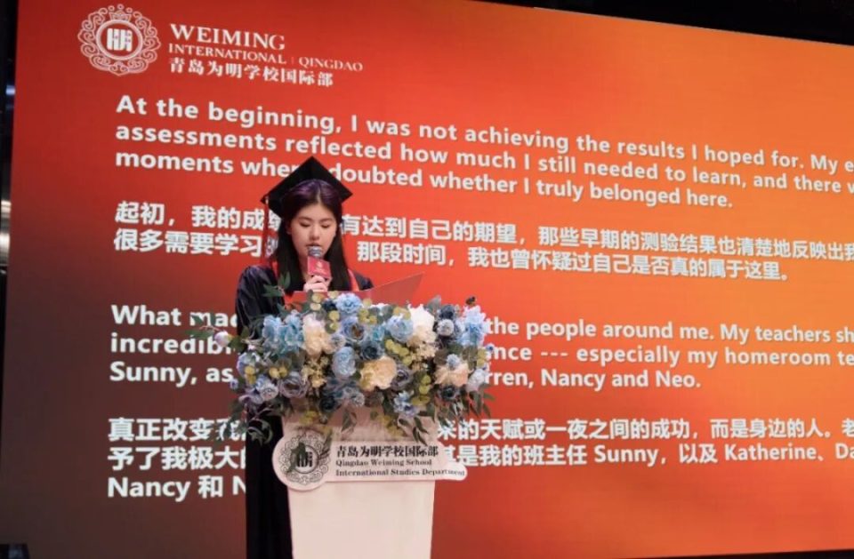 在近日举行的毕业典礼上,优秀毕业生代表与家长代表的发言,没有华丽的辞藻,却句句真挚——那是关于成长、陪伴与信任的故事,也是青岛为明国际部教育成果最生动的注脚。