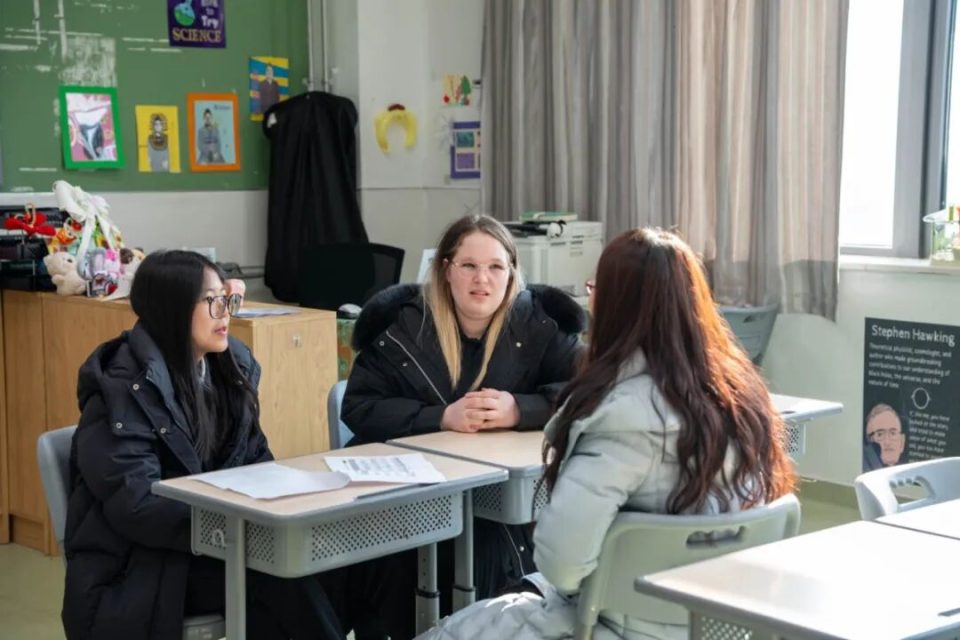 真正的教育,始于真正地“看见”每一个学生。班级家长会结束后,学科教室里,一场场跨越文化、融合东西方教育智慧的家校深度对话已然精准连接。老师们有的放矢,从专业的角度结合孩子的课堂、成绩,精准把握孩子在各学科前行路上的关键所在。透过教师的专业视角,家长们更立体地看见了自己的孩子。同频的期待、同向的努力让这场面向未来的深度对话有了温度。